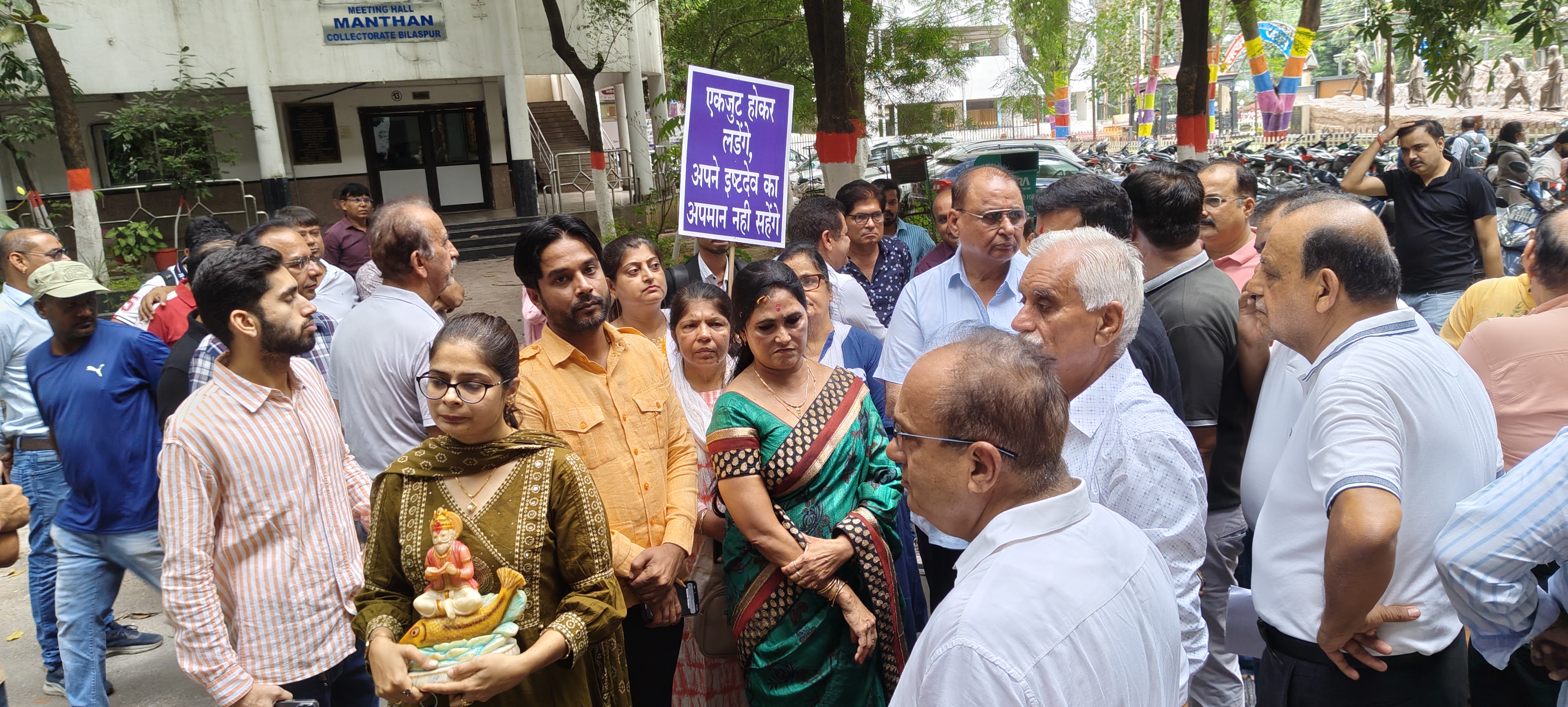 पूज्य सिंधी सेंट्रल पंचायत,महिला विंग युवा विंग,समस्त 17 पूज्य वार्ड पंचायतें,सिंधु विवेक समिति बिलासपुर,सर्व सिंधी समाज, बिलासपुर द्वारा एकजुट होकर आंदोलन किया ।विगत दिनों राजधानी रायपुर में छत्तीसगढ़ महतारी की मूर्ति खंडित होने की घटना के दौरान अमित बघेल द्वारा सिंधी समाज, समाज के आराध्य इष्टदेव झूलेलाल जी एवं अन्य समाजों के प्रति अभद्र, अमर्यादित और आपत्तिजनक टिप्पणियाँ की गईं ,जिससे पुरा सिंधी समाज आक्रोशित है।