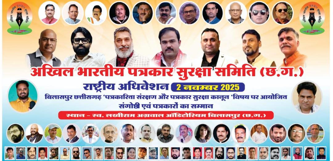 अखिल भारतीय पत्रकार सुरक्षा समिति भारत के राष्ट्रीय अध्यक्ष जिगनेश कालावाडिया (गुजरात ) की सहमति से छत्तीसगढ़ की इकाई को राष्ट्रीय अधिवेशन 2025 का जिम्मेदारी दी गईं जिसमे श्री जिग्नेश कालावाडिया ने कहाँ देश का पहला राज्य हैं जहां पत्रकार सुरक्षा कानून विधेयक बना हैं इसलिए ये राष्ट्रीय अधिवेशन रखा गया जिसमे देश के कई राज्यों के पत्रकार इस अधिवेशन में शामिल होंगे और अपने राज्यों की सरकार तक ये बात पहुंचाने का कार्य करेंगे की छत्तीसगढ़ की तरह उनके राज्यों में पत्रकार सुरक्षा कानून विधेयक लागू किया जाये जिससे पत्रकार स्वतंत्र रूप से पत्रकारिता कर सके.।
