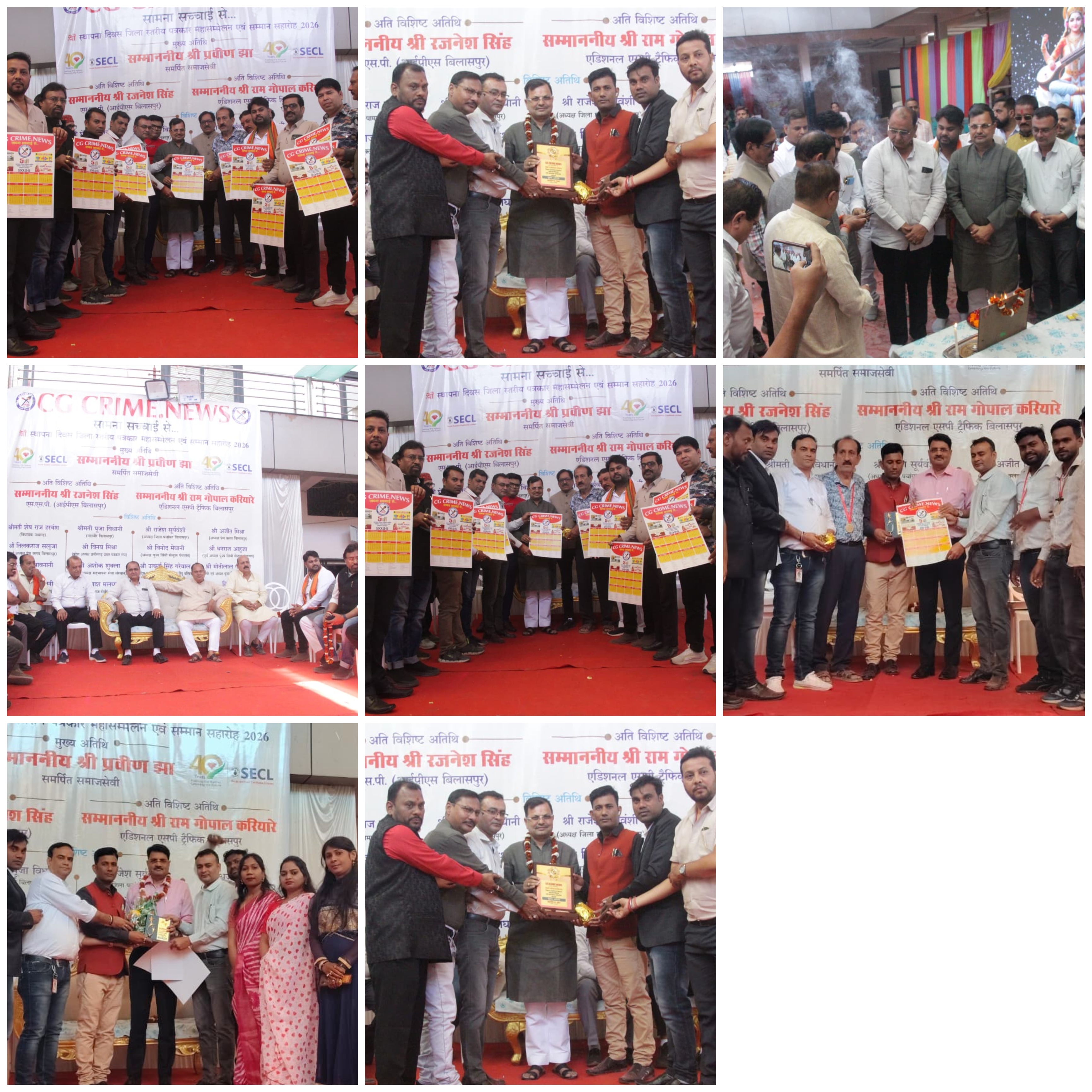 ​विशिष्ट अतिथियों की श्रेणी में बिलासपुर प्रेस क्लब के पूर्व अध्यक्ष श्री तिलक राज सलूजा, नवनिर्वाचित अध्यक्ष श्री अजीत मिश्रा, उपाध्यक्ष श्री विजय क्रांति तिवारी, कोषाध्यक्ष श्री किशोर कुमार सिंह कैलाश यादव और सहसचिव श्री हरिकिशन गंगवानी उपस्थित रहे। प्रशासनिक व्यस्तताओं के बीच एस.एस.पी. (आईपीएस) श्री रजनेश सिंह ने भी कार्यक्रम में शिरकत की। उन्होंने अपने संबोधन में सीजी क्राइम न्यूज़ की टीम को बधाई देते हुए कहा: